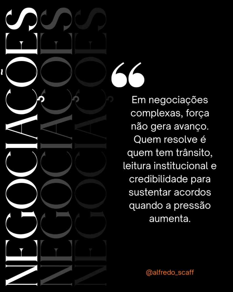 Quando interesses colidem, não vence quem grita mais — vence quem constrói pontes com legitimidade, leitura institucional e responsabilidade sobre o resultado.